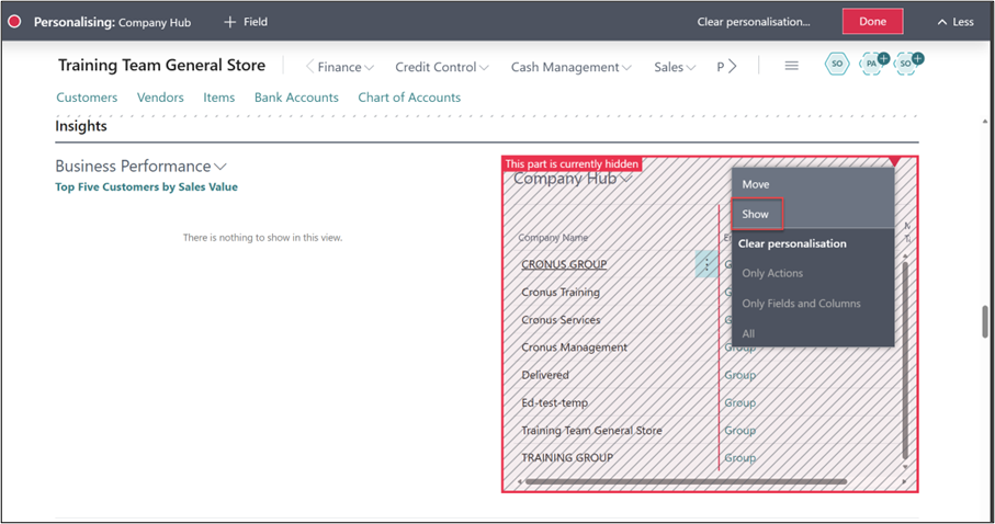 If you don’t wish to only see the Company Hub on your Role Centre it can also be added to a number of other profiles including the Business Manager via personalisation.
